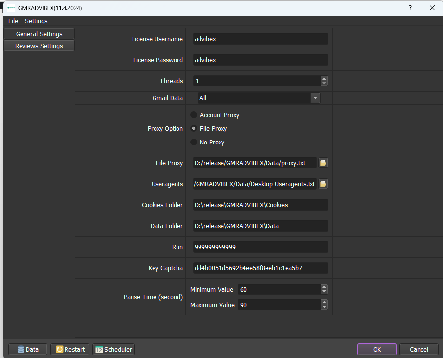 You can generate unlimited reviews with this software. It depends on how many Gmail accounts and proxies you have, as well as how powerful your computer is. With a strong computer, you can run many threads simultaneously.
